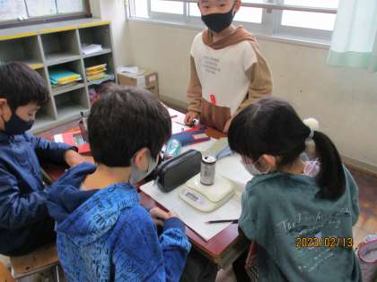 前回の授業でいろいろな物を手にとって重さを比べていました。手では分からないから調べたい!と言っていたので、今日調べました。重たいと思っていたものが実は軽かったり、予想と一緒だったりと、楽しんで調べていました。いろいろな疑問や不思議に思ったことがいっぱいのようでした。これから詳しく調べていきます。