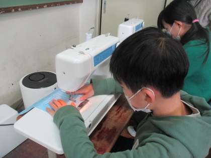 ミシンで本縫い、返し縫いの練習をしました。ランチョンマットを作るために、角の縫い方も学習しています。どの子も慎重に縫う様子が見られました。
