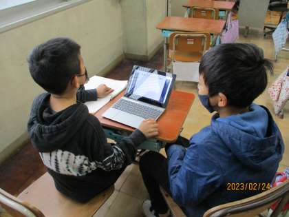 ロイロノートを使い、ペアの友達としりとりをしながら楽しく入力をしました。