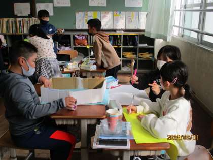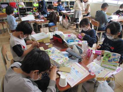 理科では、これまで学習してきたことを使っておもちゃを作る学習を始めています。