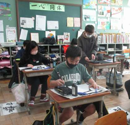 書写の学習で「成長」を書きました。大きくなりすぎないように気を付けて、形を整えて書こうとしていました。