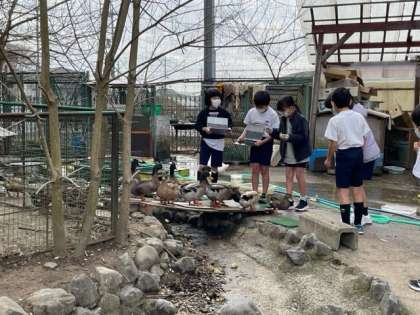 「いのちの森」や「ゆうゆうバス」「どうぶつ村」「いろりの間」の自慢をしたいようです。みんなで協力して発表原稿を作っているので、発表当日が楽しみです。