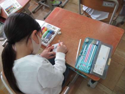 2年生は、一人一人かわいい似顔絵を画用紙に描いていました。教室のどこに掲示するのか楽しみですね。