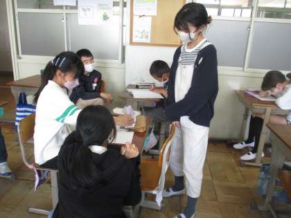 給食委員会では、「すききらいをなくしてほしい。」「マナーを守って楽しく給食を食べてほしい。」など、1年後にめざす姿を話し合いました。