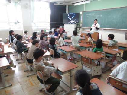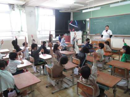 今日は、上里トークタイムでした。今日のテーマは「チェックトーク」。好きなものを一人一人が発表したら、先生が「○○が好きなのは誰でしょう?」とクイズを出します。とっても楽しそうな子どもたちでした。