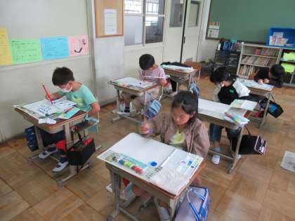 久しぶりの絵のぐを使っての学習で、とても嬉しそうな子どもたち。