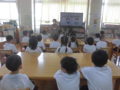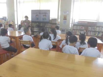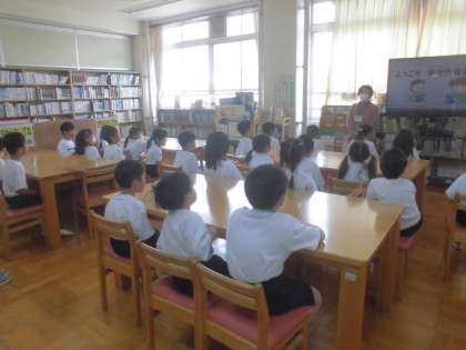 図書室の使い方を教えてもらいました。興味津々に聞いていました。これかた100冊目指して頑張っていきます。