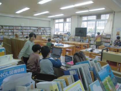 他の学年に本を貸し出したり,全校生徒が聞いている放送で話をしたりしていました。