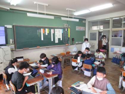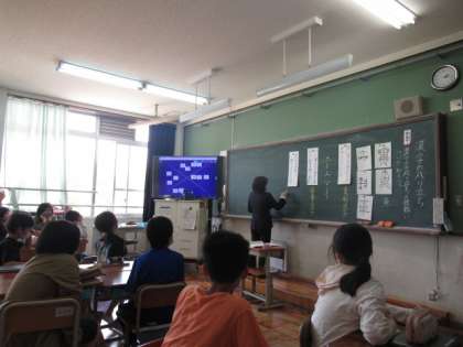4種類ある漢字の成り立ちを使った「漢字当てクイズ」をしながら漢字の成り立ちについて話し合いました。GIGA端末を使って、いろいろな漢字を仲間分けしました。