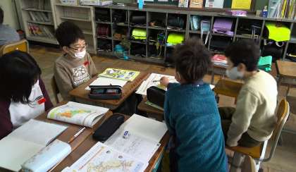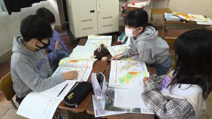 今日は、京都府の人口分布図と交通の様子の図を見比べて、