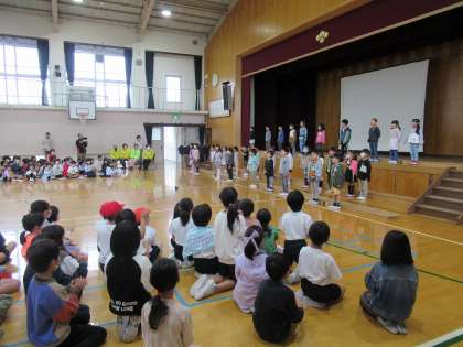 他の学年の発表や1年生からのお返しも、とても楽しそうに聞いていました。