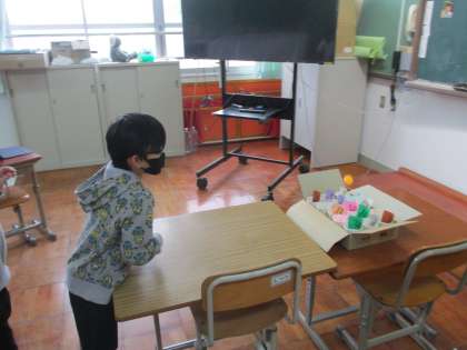 3くみ ピンポン玉入れ