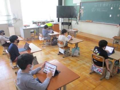 子どもたちの発案によって、Googleを使った調べ学習をしました。