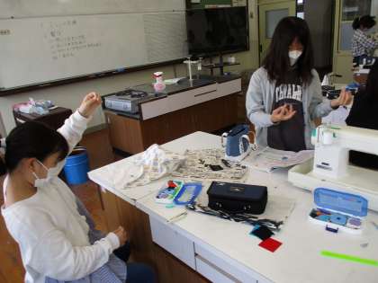 ミシンで縫ったり、刺繍をしたり、少しずつ完成に近づいています。