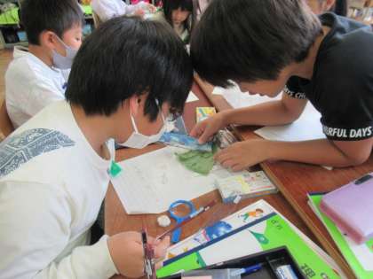 虫眼鏡を使ってじっくり観察していた子どもたち。
