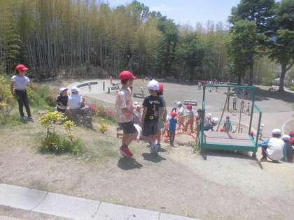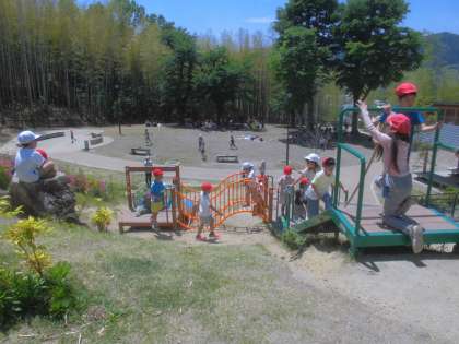 お弁当の後は、遊具などでみんな遊びました。鬼ごっこや遊具遊びなどをしていました。