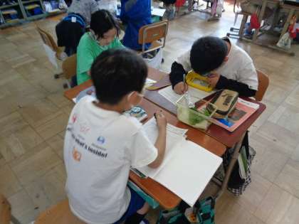 理科の学習でモンシロチョウの幼虫を育てています。ゴールデンウィークの間にうまれました。生まれてすぐはとても小さく見つけるのに一苦労でしたが、幼虫も少しずつ大きくなってきました。うまく育ってくれるといいなと思います。