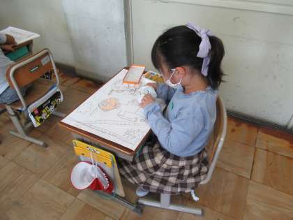 今日はたけのこほりの絵に色を塗っていきました。
