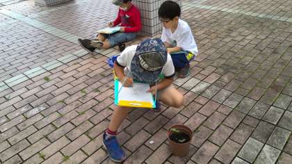育てている、ホウセンカ・ヒマワリの子葉が出てきたので