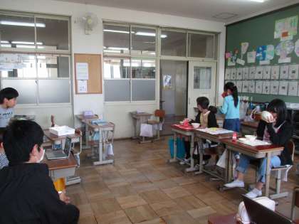給食委員会の活動で、楽しく給食時間を過ごしてもらうために動画を作成しました。自分たちで考えたシナリオで、練習し、いざ本番。