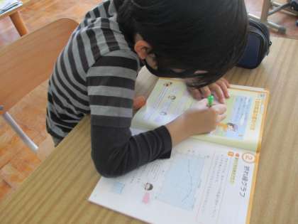 2年生児童は引き算を、4年生児童たちは折れ線グラフを学習しました。