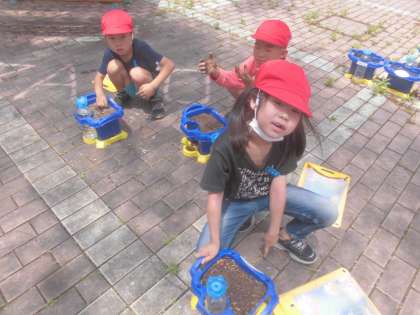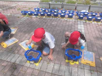あさがおの種を観察した後、種を植えました。これからお世話をしていきます。