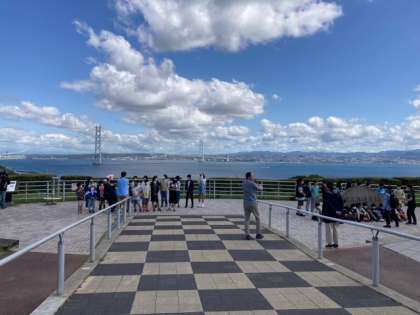 快晴の明石大橋。 たくさんの笑顔で記念撮影。