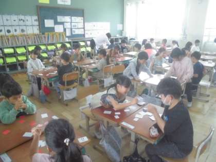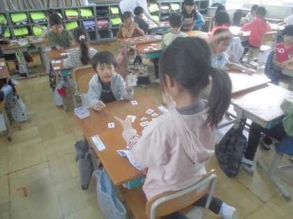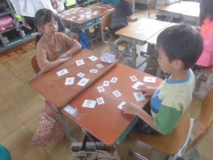 2つの札を合わせて10になるゲームをしました。ゲームを通して、10までの数について学びました。楽しそうに考えて学習をしていました。学んだあとはプリントでも学習をしています。