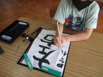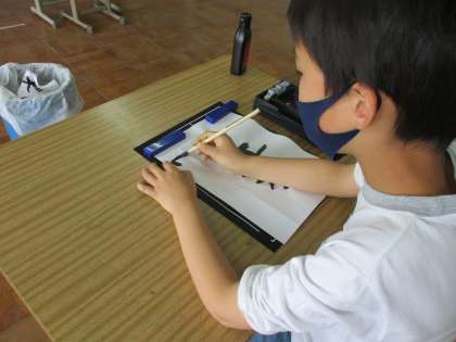 細筆をもって、筆を立て、穂先を使って名前を書くことを意識して取り組みました。