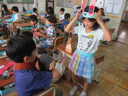 今日はまず友達に見せあって、中間報告をしました。友達からアドバイスをもらい、付け足しをしていきました。アドバイスをしてもらい、素敵な作品に仕上がりました。