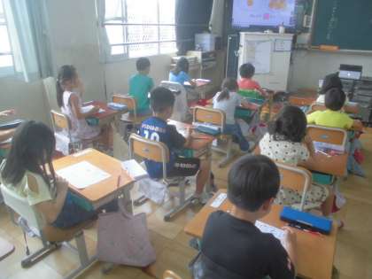 4月から始まったひらがなの練習。今日ですべてのひらがなの練習をしました。これからは、ひらがなを読んだり書いたりできるように学習を進めていきたいです。1年生よく頑張りました。