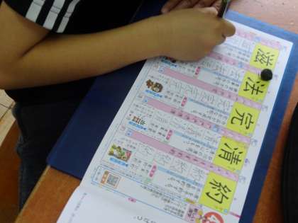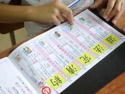 漢字の練習を頑張っています。筆順や読み方を確認しながら、一画一画ていねいに練習しています。