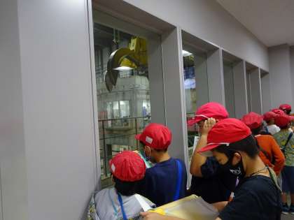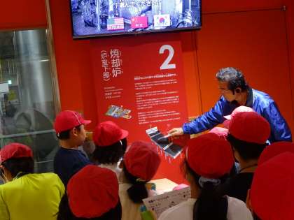パッカー車で集めたごみや家から自分で持ってきたごみがどのように処理されていくのか、順をおって見せていただきながら、教えてもらいました。