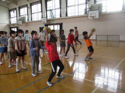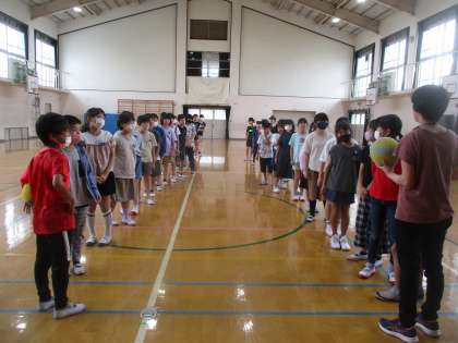 5年生 ボール送りリレーの練習