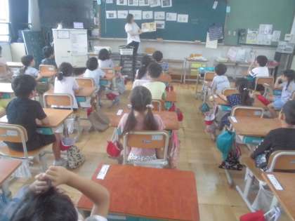 朝読書の時間に、宮本先生の読み聞かせをしてもらいました。給食に関係する絵本でした。子ども達は興味津々にお話を聞いていました。朝の準備が早くでき、余裕をもって活動に取り組みことができました。
