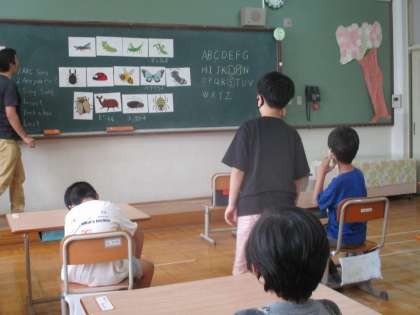 3組の英語では、「Are you 〜」や虫の名前の学習をしました。いろいろな身近な虫の名前を英語で発音しました。知っている英語もあり、楽しく覚えていました。
