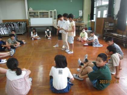キャンプファイヤーのゲームの進行の練習をしました。