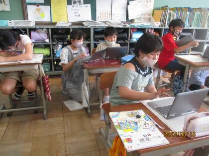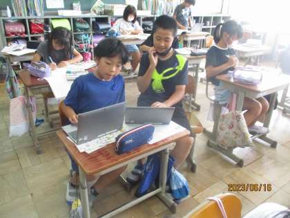友だちのサラダのよいところとアドバイスを書いて、ロイロノートで送りあいました。友だちからカードをもらい、うれしそうでした。
