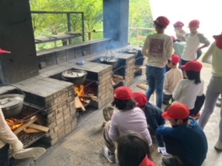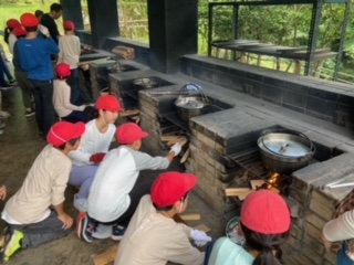自分達でおこした火でかまどに火をつけました。