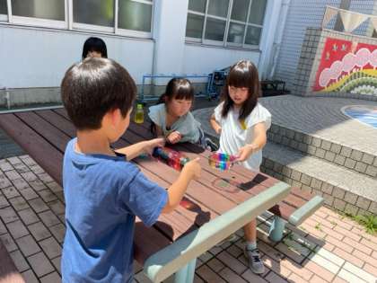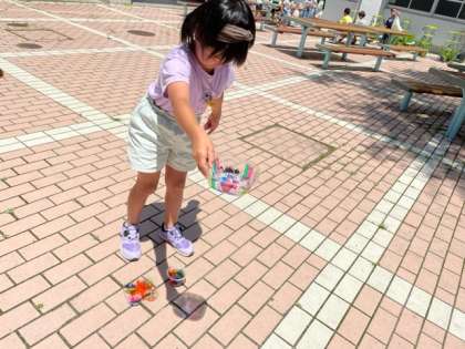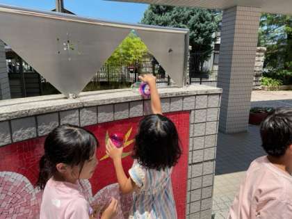 頑張って塗っていた作品が地面にきれいいに写り、みんな嬉しそうでした。