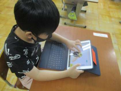 3組の理科や生活の時間に、NHKの「すごい虫図鑑」を使って、いろいろな夏の虫を調べました。「へえ!こんななってるんや」と顕微鏡で見た写真や、動き方の動画を見て、興味いっぱいでした。
