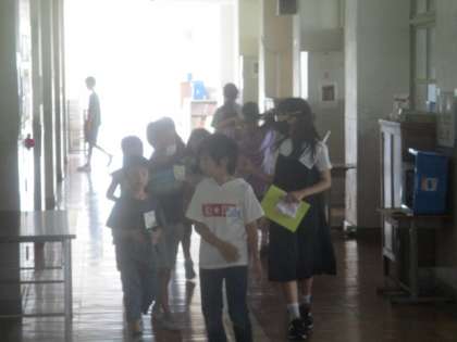 1年生の手をつないで歩いている人や「次、どこ行く?」と優しく聞いている人など、とてもがんばってグループのみんなを連れていくことができました。