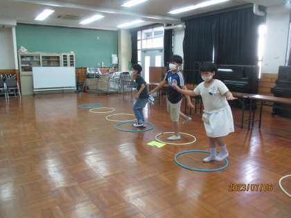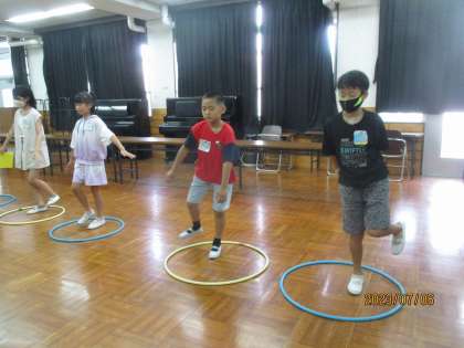 片足バランスゲームでは、目をつむって20秒間バランスを保つことができたら点数がもらえます。全班成功しました。