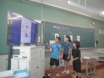 授業で学習した教科の名前を活用し,「I have・・・on Monday.」の言い方を練習しました。