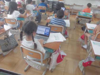 学校の思い出で絵日記を書きました。どんなことをしたのか。どんな気持ちだったのか。3文で書きました。終わった後は、タブレットを使って、国語や算数の復習をしていました。自分で考えて、学習に向かっていました。