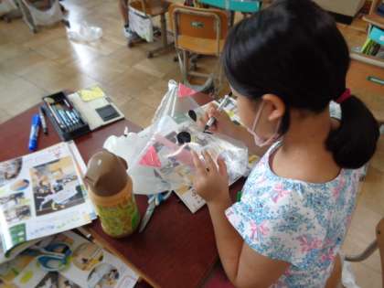 少し前ですが図工の学習で「ふき上がる風にのせて」の学習に取り組みました。