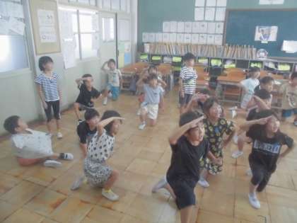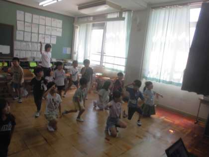 運動会に向けて目標をたてました。また、表現運動をしました。リズムにのって楽しそうに体を動かしていました。