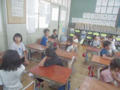 トークタイムでチェンジトークをしました。担任がチェンジを言うたびに話題を変えます。聞いている人は、頷いたり、なるほどなどとリアクションをしたりして聞いていました。上手く話しができない時には、聞き手が優しく質問をして話せるようにしていました。
