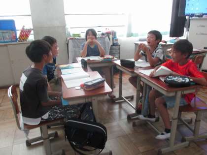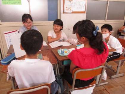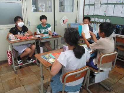 今日は、犬をすすめるグループと猫をすすめるグループと討論し、校長先生役の人が納得した方を選ぶという活動をしました。