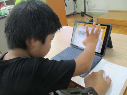 2年生児童は50音表を使って、たくさん文字が打てるようになってきました。